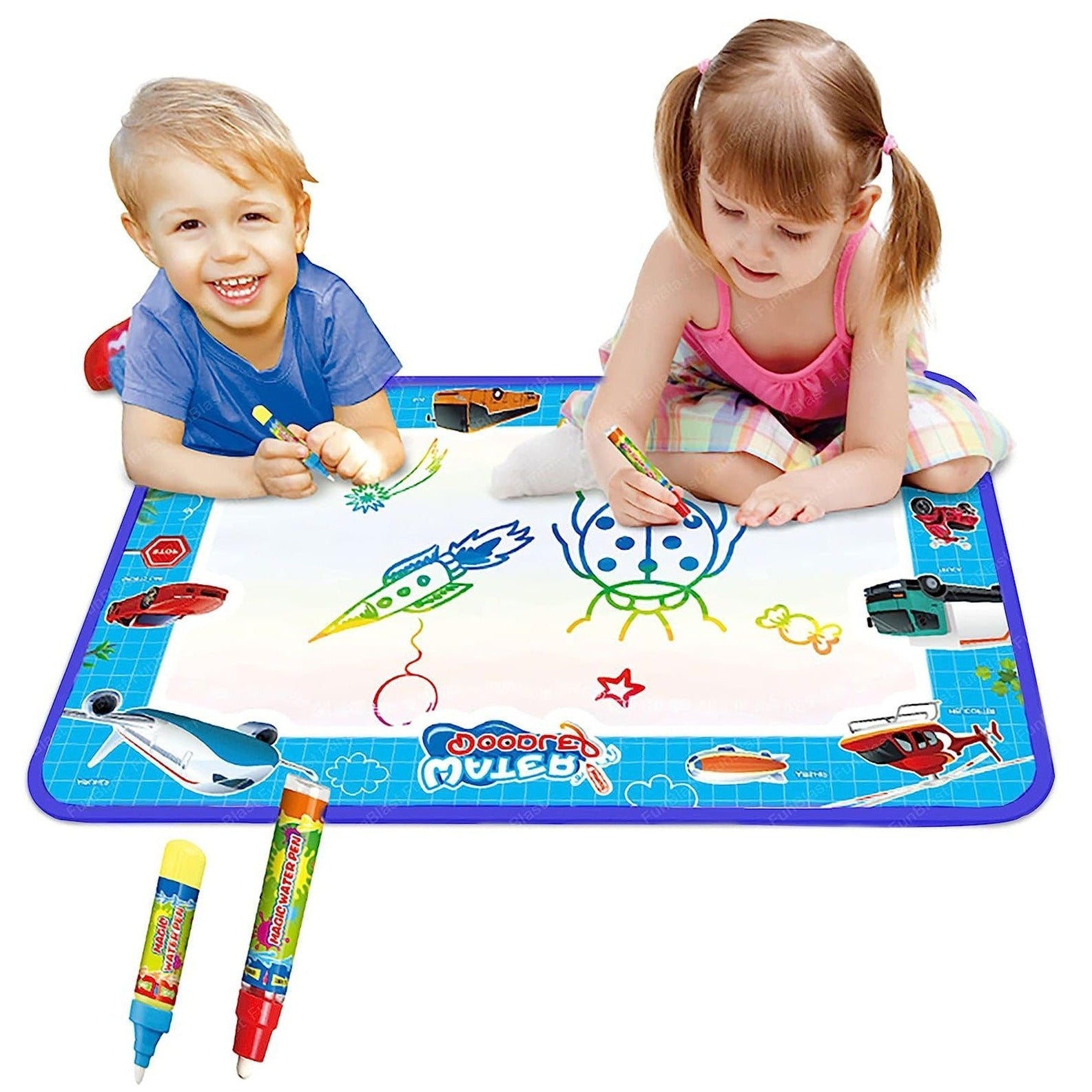 Water doodle mat for toddlers, 1 water doodle mat with 2 magic pens. Easy to use - water drawing mat is made of durable polyester and nylon material and can be foldable which is convenient to use and storage. Medium size doodle mat. Educational toys for kids- doodle mat for kids is a very good and durable learning and educational toy, can be drawing on this doodle mat and paint and also, learn many skills and imagination skills. Best gift for toddlers- This is a very good and adorable gift for kids. Are you looking for a perfect gift for your loved ones? This magic water doodle mat will be a unique gift idea. This FunBlast learning and educational doodle mat can be considered the best return gift, birthday gift, school prize, kids party, and can be gifted on any suitable occasion.